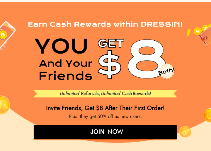Hey! I recently found out about DRESSIN, a brand specializing in high-quality clothing at excellent prices. If you sign up and place your first order with my special link; DRESSING CASH REWARDS we both get rewards of up to $8. Let’s have a blast shopping together!